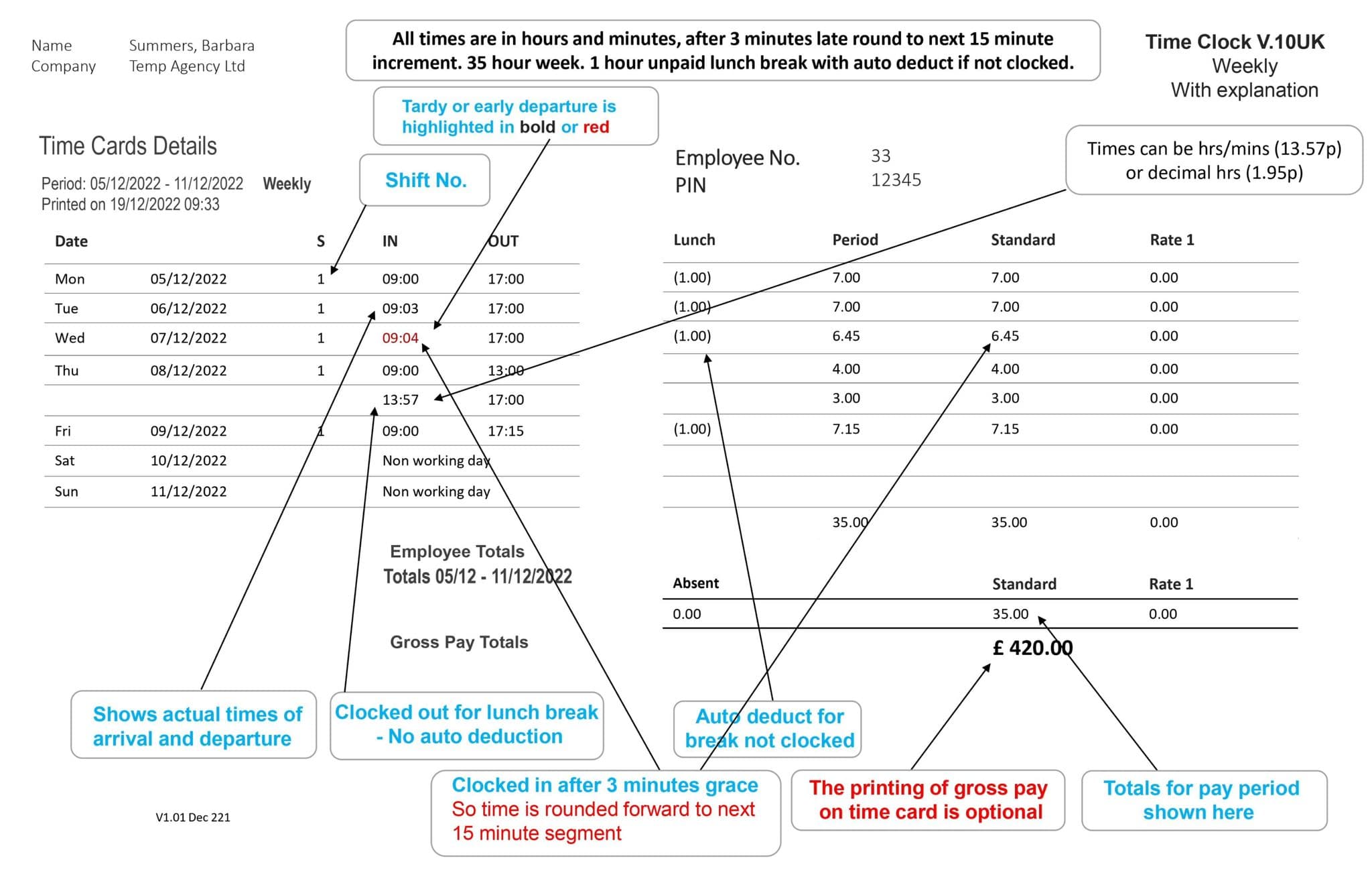 - Present a pre-enrolled finger or PIN & password to clock, that is all.