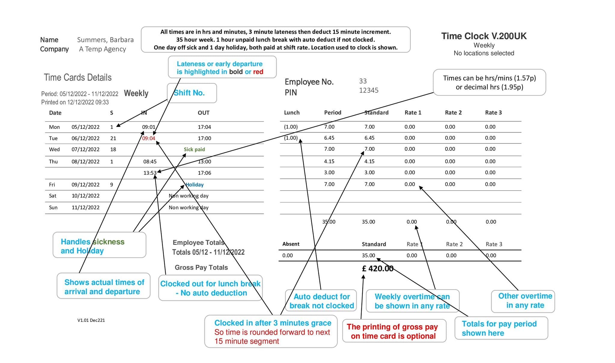 | Lateness Retrieval Facility The Time Systems UK software has intelligent rounding rules so you only pay for the exact time worked. Round forward/back for late arrivals, long lunches, early departures, lunch not taken - so you only pay for the hours worked. |